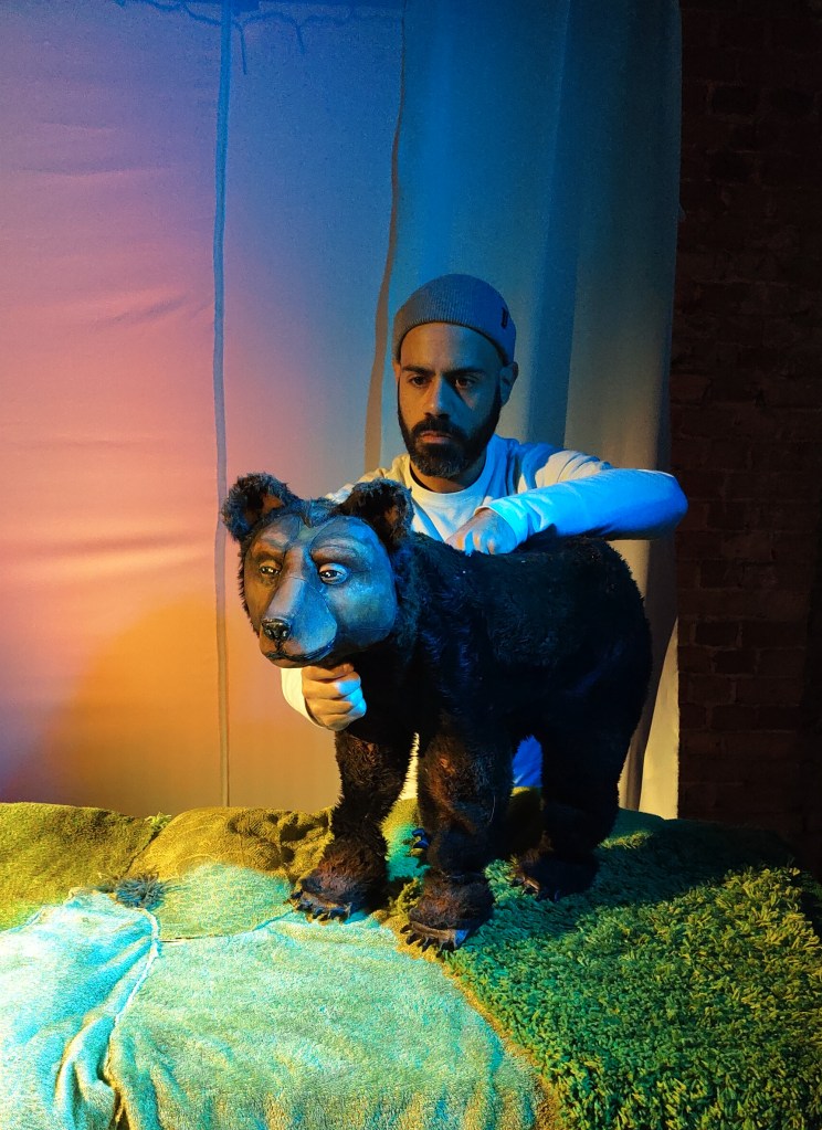 Karhun jälki sai alkunsa koronapandemian iskiessä Suomeen maaliskuussa 2020. Ihmiset sulkeutuivat vapaaehtoisesti tai pakosta koteihinsa ja aktiviteettimahdollisuudet sekä ihmisten tapaamiset vähenivät minimiin. Tämän myötä luontoretket kotimaassa ovat lisääntyneet. Moni on saanut näinä vaikeina hetkinä, kun ulkomaailma on hallitsematonta, metsästä voimaa ja rauhaa itselleen. Pohdin, miten näitä metsän vaikutuksia voisi välittää katsojille esityksen avulla. Olen pitkään pyöritellyt ajatusta, että haluaisin tehdä kiertue-esityksen ikäihmisille palvelutaloihin. Minusta on tärkeää viedä esityksiä paikkoihin, joissa teatteri ei ole itsestäänselvyys ja varsinkin kiertävät nukketeatteriesitykset tälle kohdeyleisölle ovat harvassa.